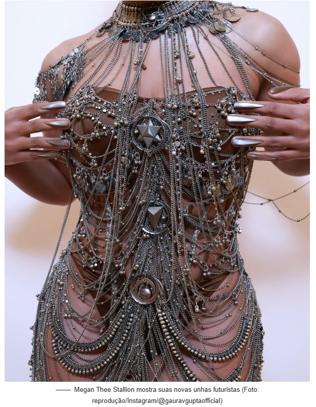 No entanto, pouco mais de um ano depois, as unhas invertidas voltaram com força total. Megan Thee Stallion apostou na estética durante o desfile da marca Gaurav Gupta na Semana de Alta Costura. Bastou isso para que o visual viralizasse nas redes sociais, com diversos usuários reproduzindo o estilo e compartilhando tutoriais.
